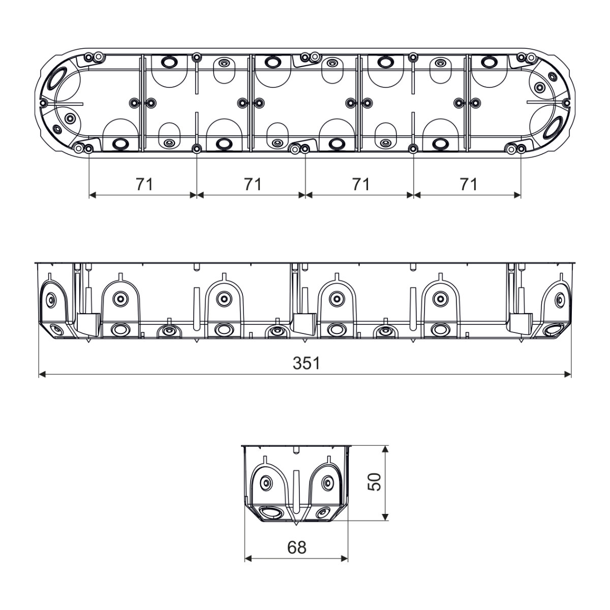 | Расстояние при соединении двух коробок | 71 mm |
