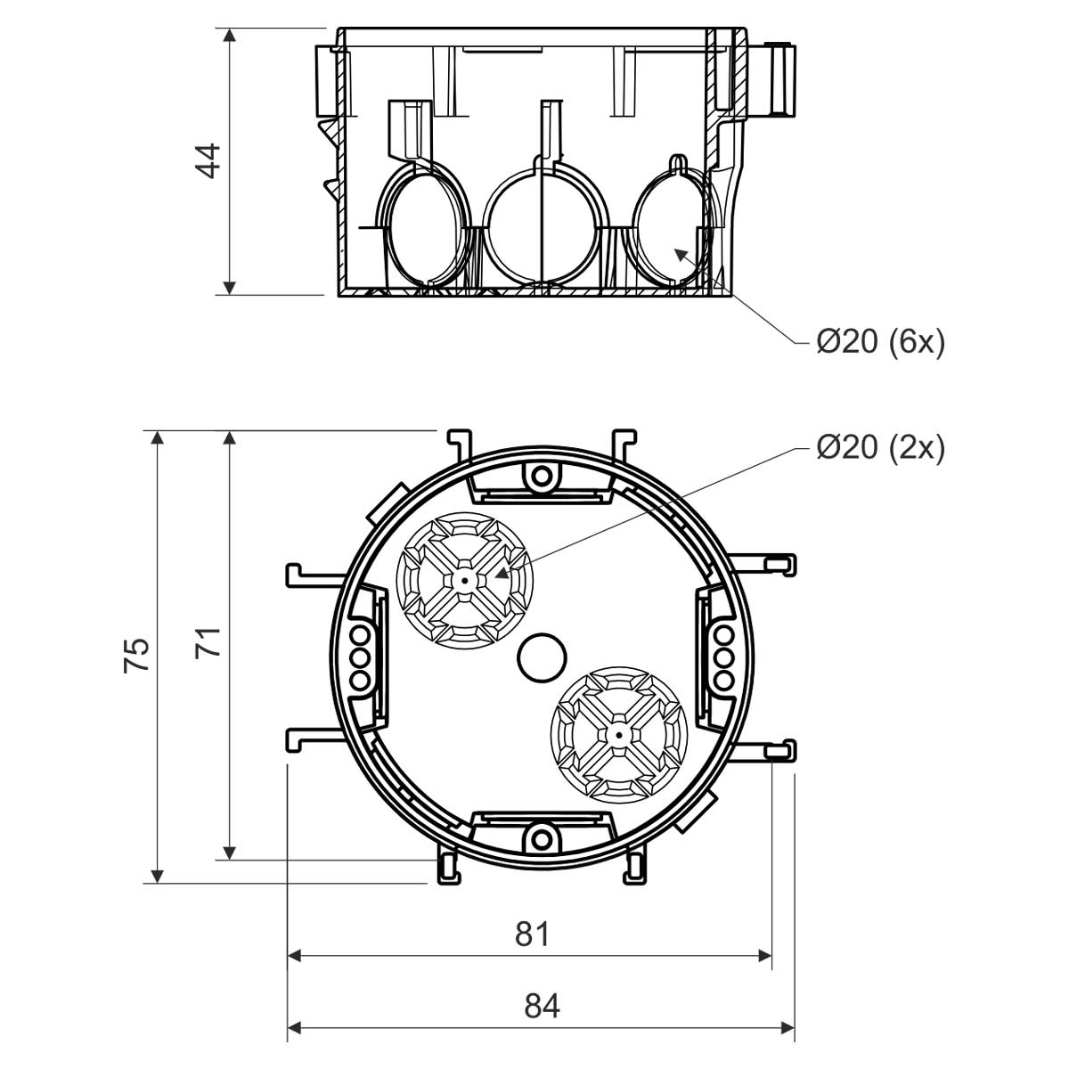 | Расстояние при соединении двух коробок | 71/81 mm |